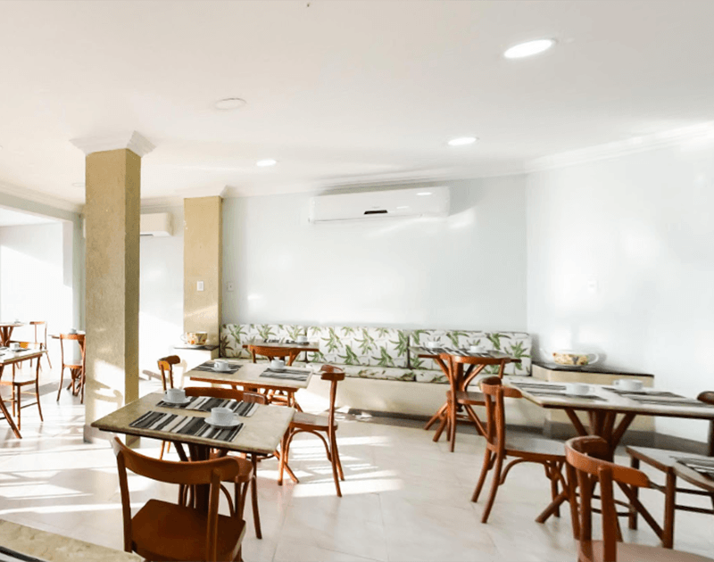 Todos os apartamentos possuem ar-condicionado, telefone, TV a cabo, frigobar e banheiro equipado com chuveiro elétrico.